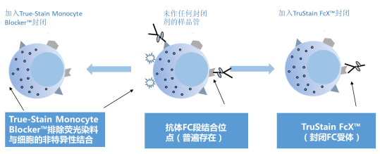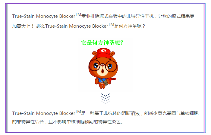 圖1A-B分別為T(mén)ruStain FcXTM阻斷和True-Stain Monocyte BlockerTM阻斷后的CD14 BV421TM和CD3 APC /Cy7共染結(jié)果圖。