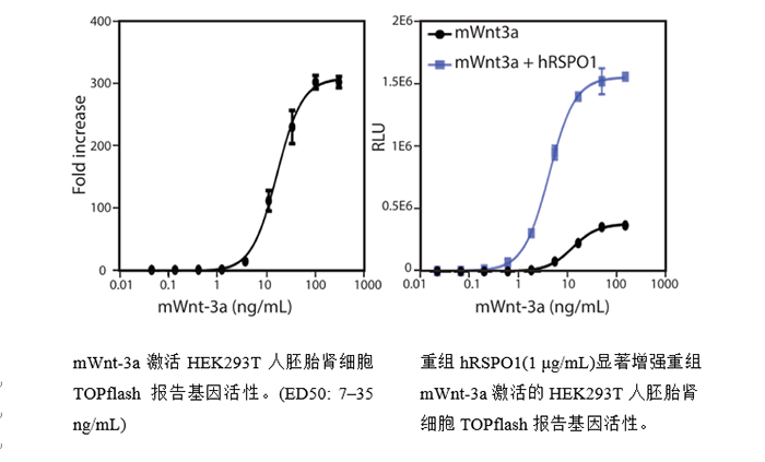 C3H10T1/2干細胞培養(yǎng)至細胞融合,使用BMP-9(20 ng/mL, Cat. No. 553102)和不同濃度的h/mSHH、或hDHH、或mIHH(Cat. No. 753502, 754602, 759802,758602)處理,將間充質干細胞誘導分化為成骨細胞。使用對硝基苯磷酸酯作為底物,檢測成骨細胞標記物堿性磷酸酶。