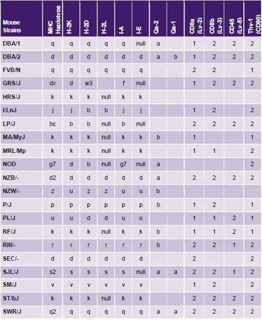 實驗室常用小鼠單倍型及同種異型抗原