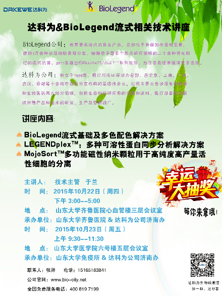 10月22日至23日,分別由山東大學齊魯醫(yī)院 、山東大學免疫所和達科為生物濟南辦共同承辦的流式專家講座,在山東大學齊魯醫(yī)院心血管三樓會議室和六號樓五層會議室如期舉行。