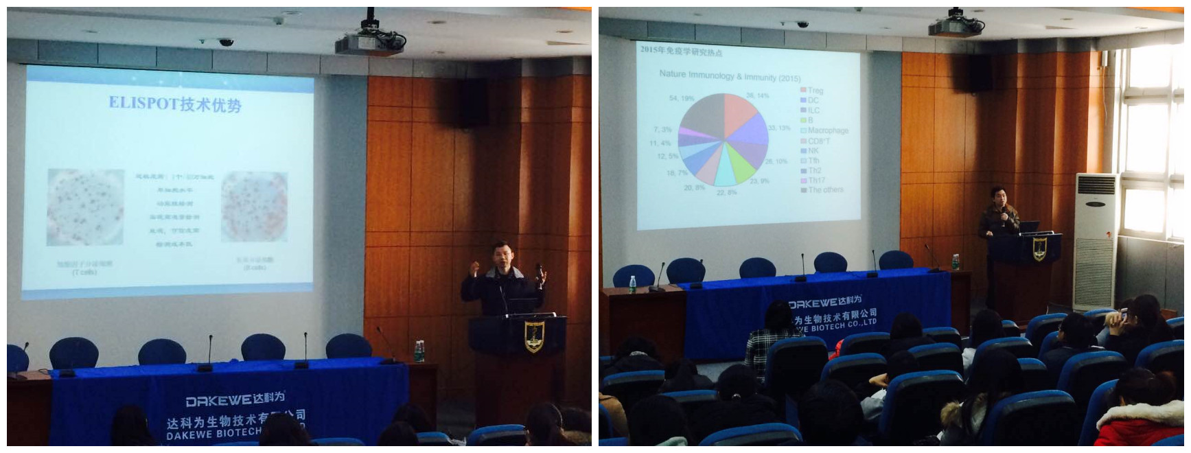 1月8日上午九點,第二天的理論課程開始了。首先是達科為生物工程中心周翔經(jīng)理作報告。周翔經(jīng)理講述了ELISPOT的原理、刺激劑的選擇、斑點結果判定以及ELISPOT的應用等。