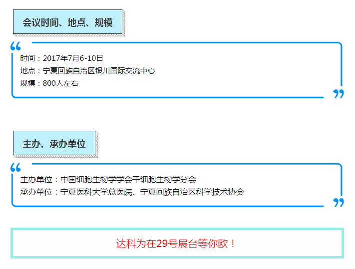 由中國細胞生物學學會干細胞生物學分會主辦,寧夏醫(yī)科大學總醫(yī)院和寧夏科學技術協(xié)會共同承辦的“中國干細胞第七屆年會”,將于2017年7月6日至10日在寧夏回族自治區(qū)銀川國際交流中心召開。本屆年會主題為:干細胞研究與轉(zhuǎn)化——破冰之旅。達科為也在本次會議中積極響應,達科為&PeproTech攜手合作,恭祝中國干細胞第七屆年會取得成功!