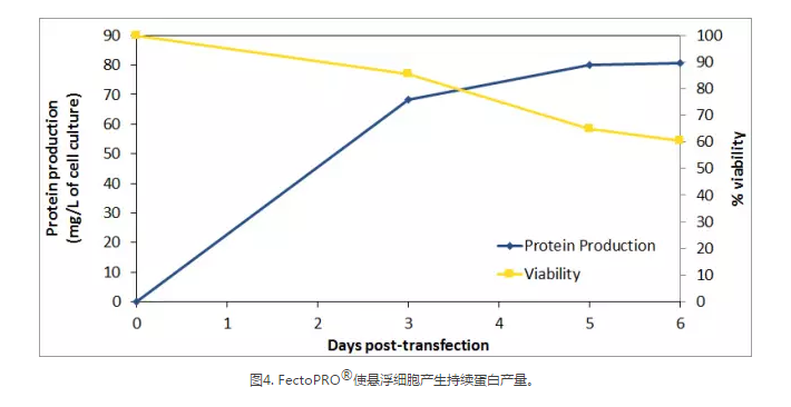 過(guò)去幾年,蛋白質(zhì)生產(chǎn)的持續(xù)時(shí)間有所增加,大部分蛋白質(zhì)生產(chǎn)過(guò)程持續(xù)1~2周,以獲得最佳的蛋白產(chǎn)量。FectoPRO?確保幾天內(nèi)產(chǎn)生持續(xù)的蛋白產(chǎn)量,同時(shí)保持較高的細(xì)胞活力以延長(zhǎng)蛋白生產(chǎn)。