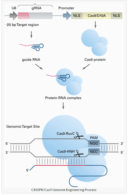 CRISPR/Cas9是近幾年發(fā)展起來的基因編輯技術(shù),彌補了傳統(tǒng)基因編輯技術(shù)的諸多不足。Cas9蛋白可以在20nt左右的向?qū)NA介導(dǎo)下切割特定的基因組位點,而且?guī)缀蹩梢栽谌魏挝恢冒l(fā)揮作用。只要稍加改造,就可以應(yīng)用于基因表達(dá)調(diào)控、表觀基因組修飾及活體成像領(lǐng)域。