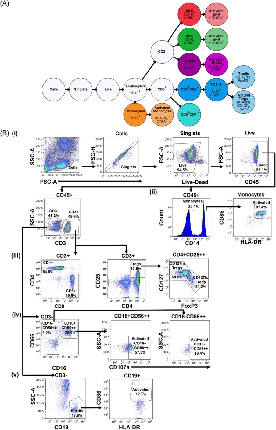 (v)B細(xì)胞:CD3-CD19+和活化的B細(xì)胞:CD3-CD19+CD86+HLA-DR+。