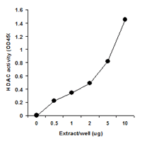 圖1.從MCF-7細胞中制備核提取物,并測定不同量的提取物中HDAC的活性, 結果顯示該試劑盒具有高特異性