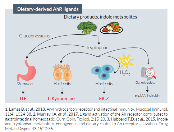AhR能夠廣泛感知結(jié)構(gòu)上不同的外源性和內(nèi)源性分子。已被發(fā)現(xiàn)的AhR激動劑包括產(chǎn)生于外界環(huán)境中的外源化合物,如污染物;以及在胃和腸道中和其他器官中,由于光氧化或氧化應激而轉(zhuǎn)化的吲哚代謝物。 InvivoGen提供多種膳食來源的AhR配體及其合成的AhR拮抗劑,以滿足您的研究需要。